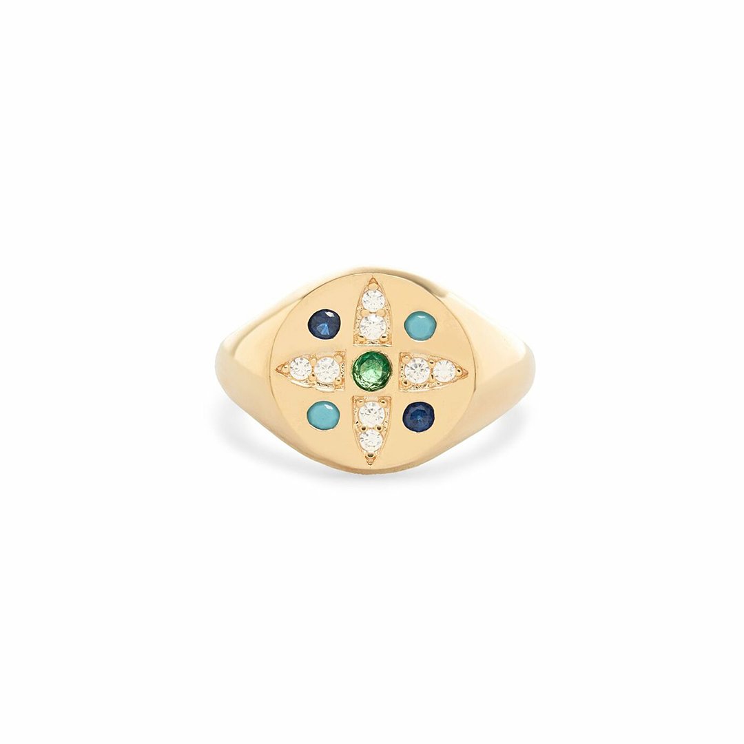 Semijoia em ouro 18k, níquel free, modelo cravejado com pontos coloridos.