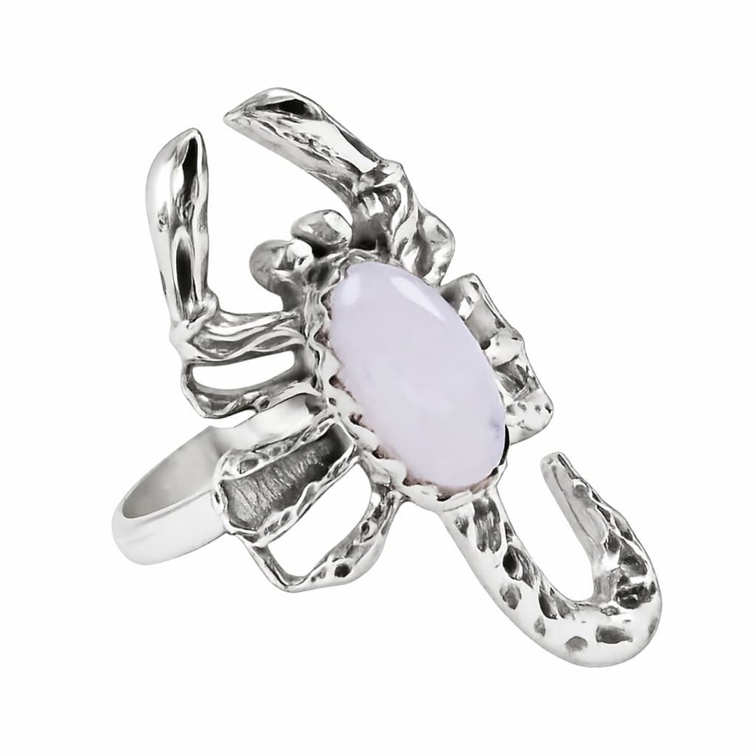 Anel confeccionado em Prata 925, modelo Escorpião com pedra natural de Pedra da lua