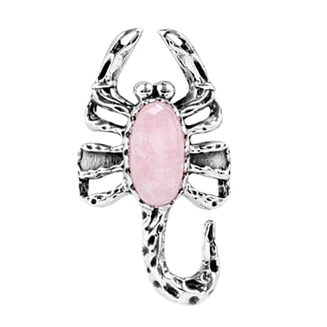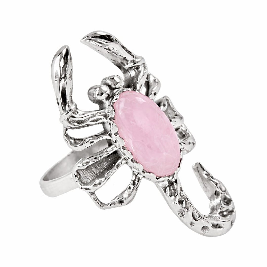 Anel confeccionado em Prata 925, modelo Escorpião com pedra natural de Quartzo Rosa