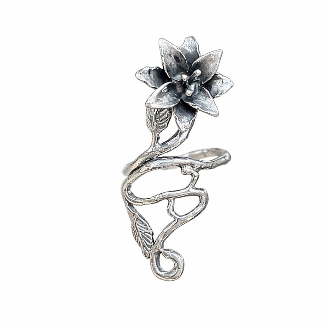 Anel confeccionado em Prata 925, modelo Flor em formato orgânico Maxi, com acabamento oxidado