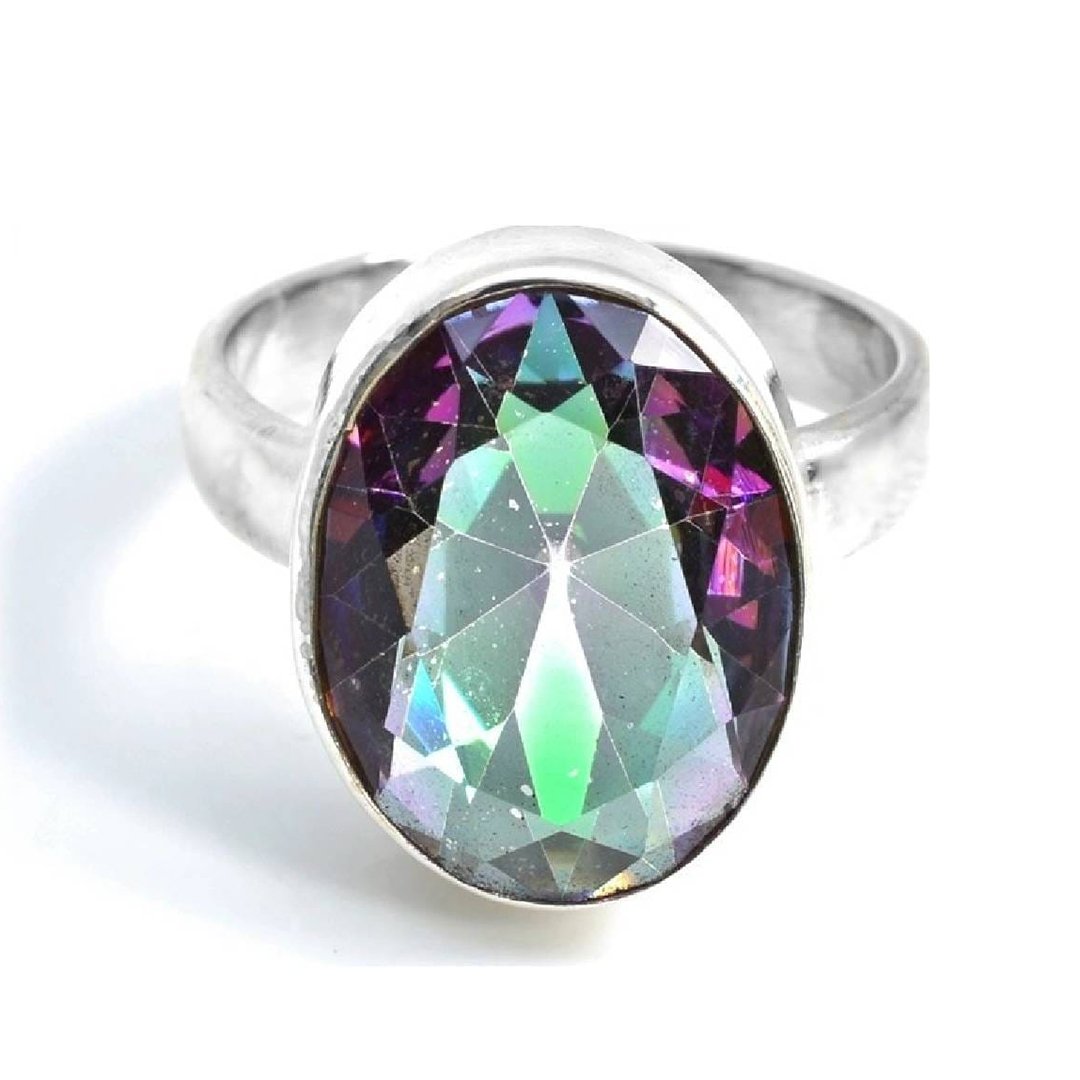 Anel confeccionado em Prata 925, modelo Oval com pedra Topázio Místico.