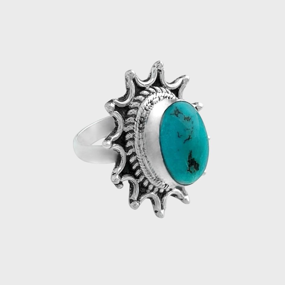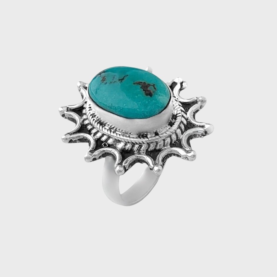 Anel, confecção indiana, com pedra de Turquesa natural.