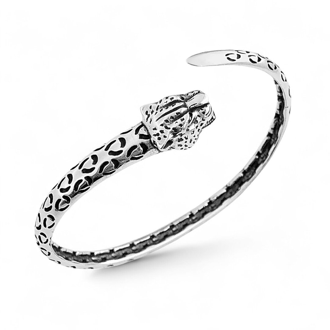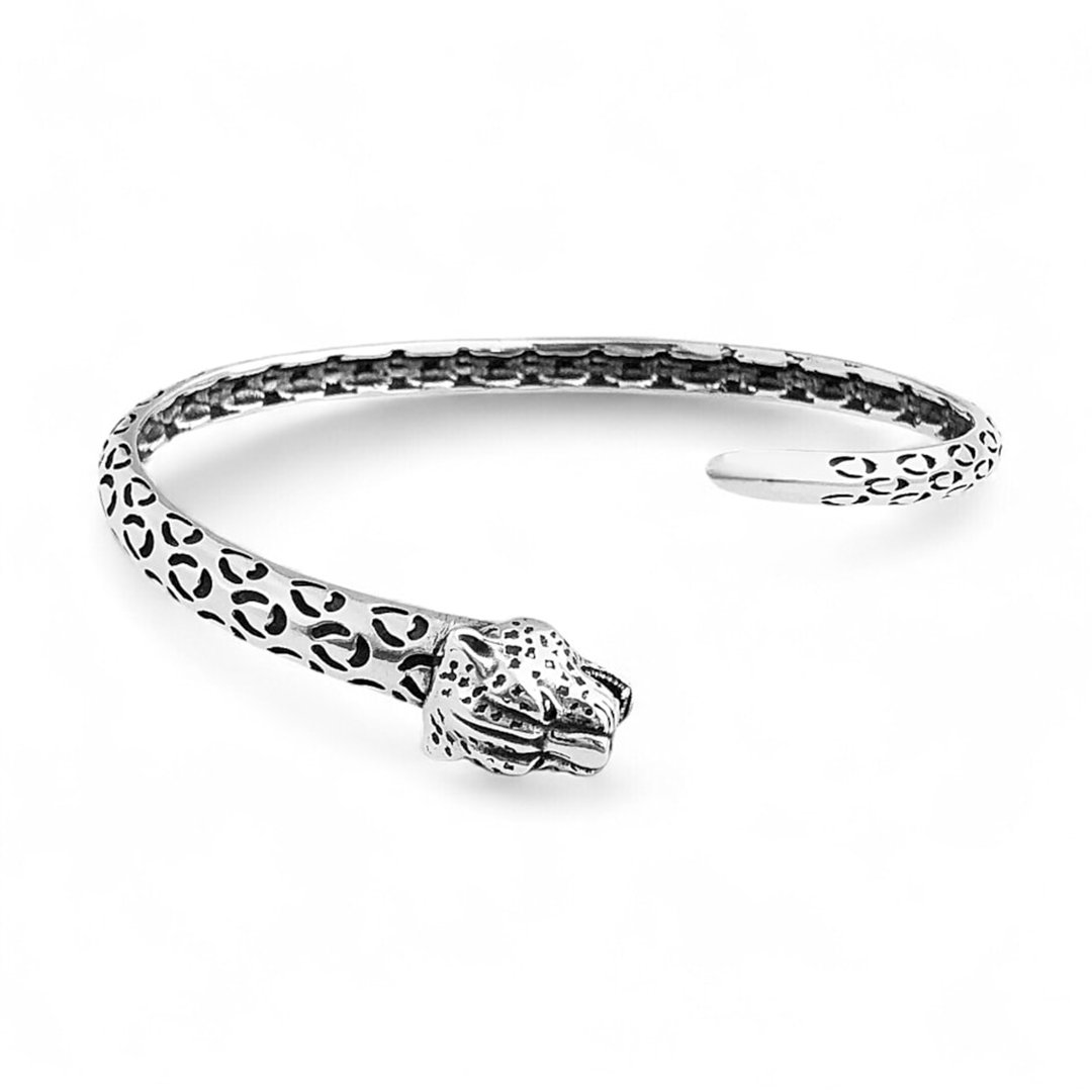 Bracelete confeccionado em Prata 925 modelo Onça, com acabamento oxidado.