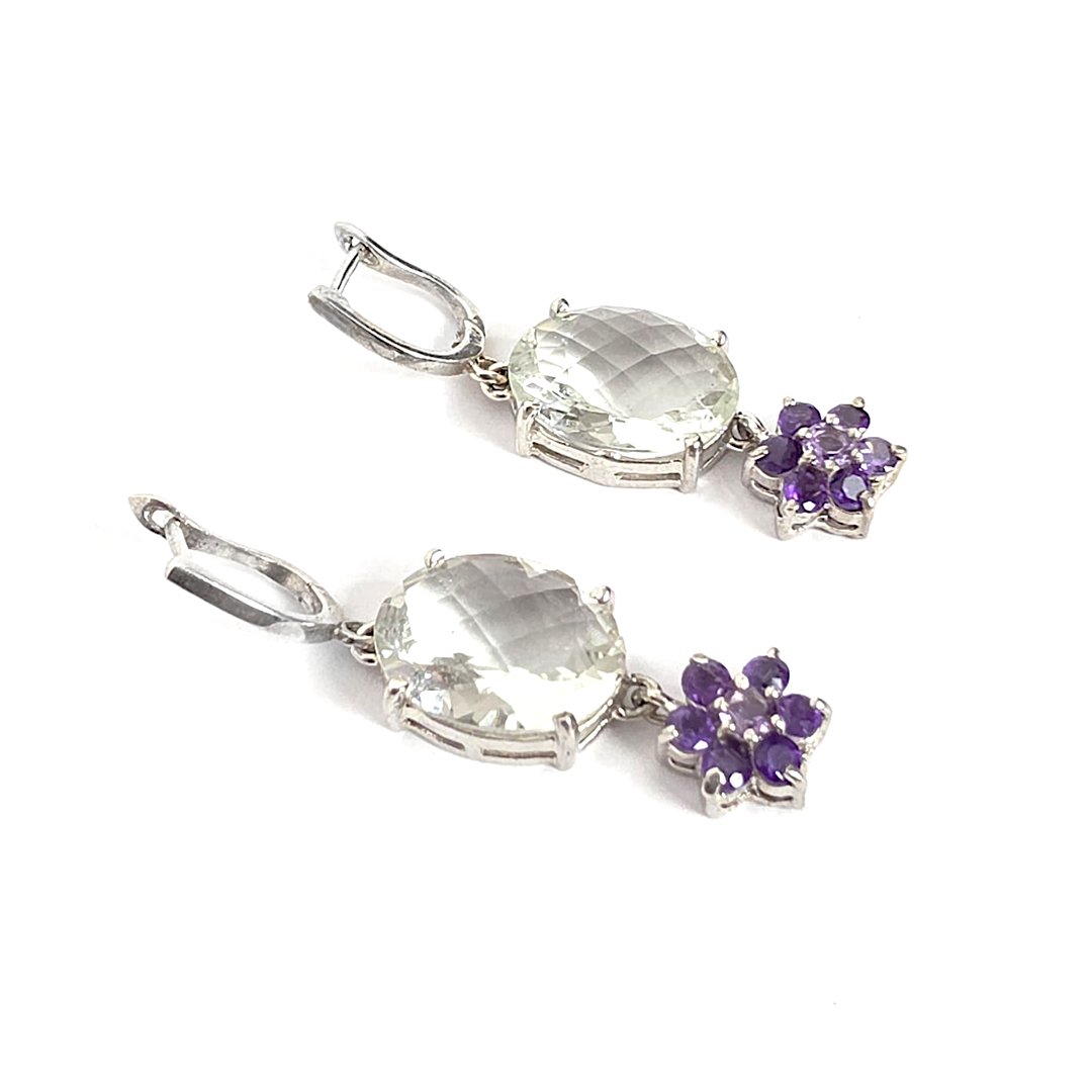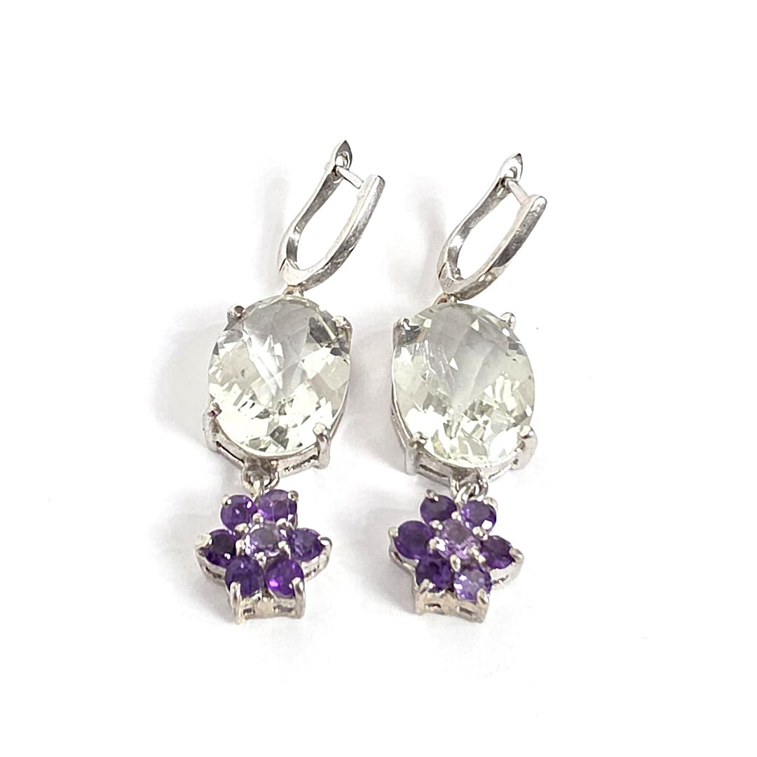 Brinco de Prasiolita e Ametista