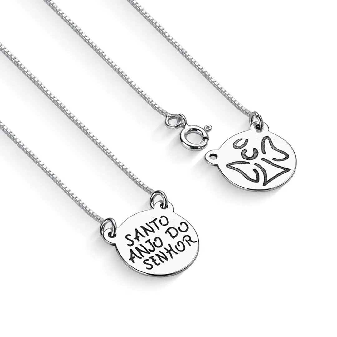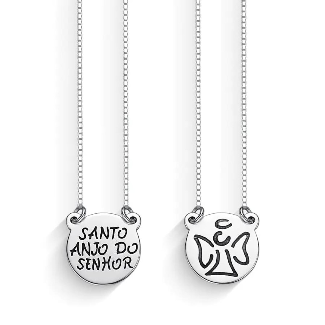 Escapulário confeccionado em Prata 925 modelo infantil, Santo Anjo.
