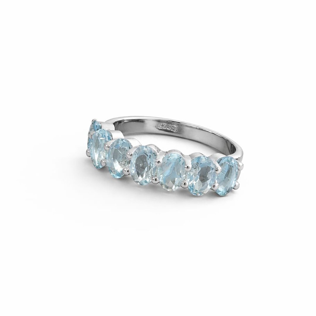 Anel confeccionado em Prata 925, modelo com pedra natural de Topázio Sky lapidado.