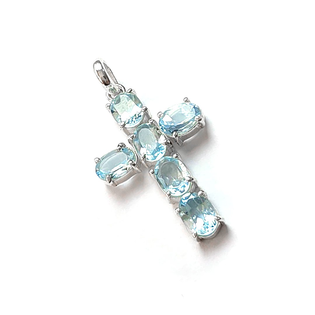 Pingente Cruz Topázio Azul