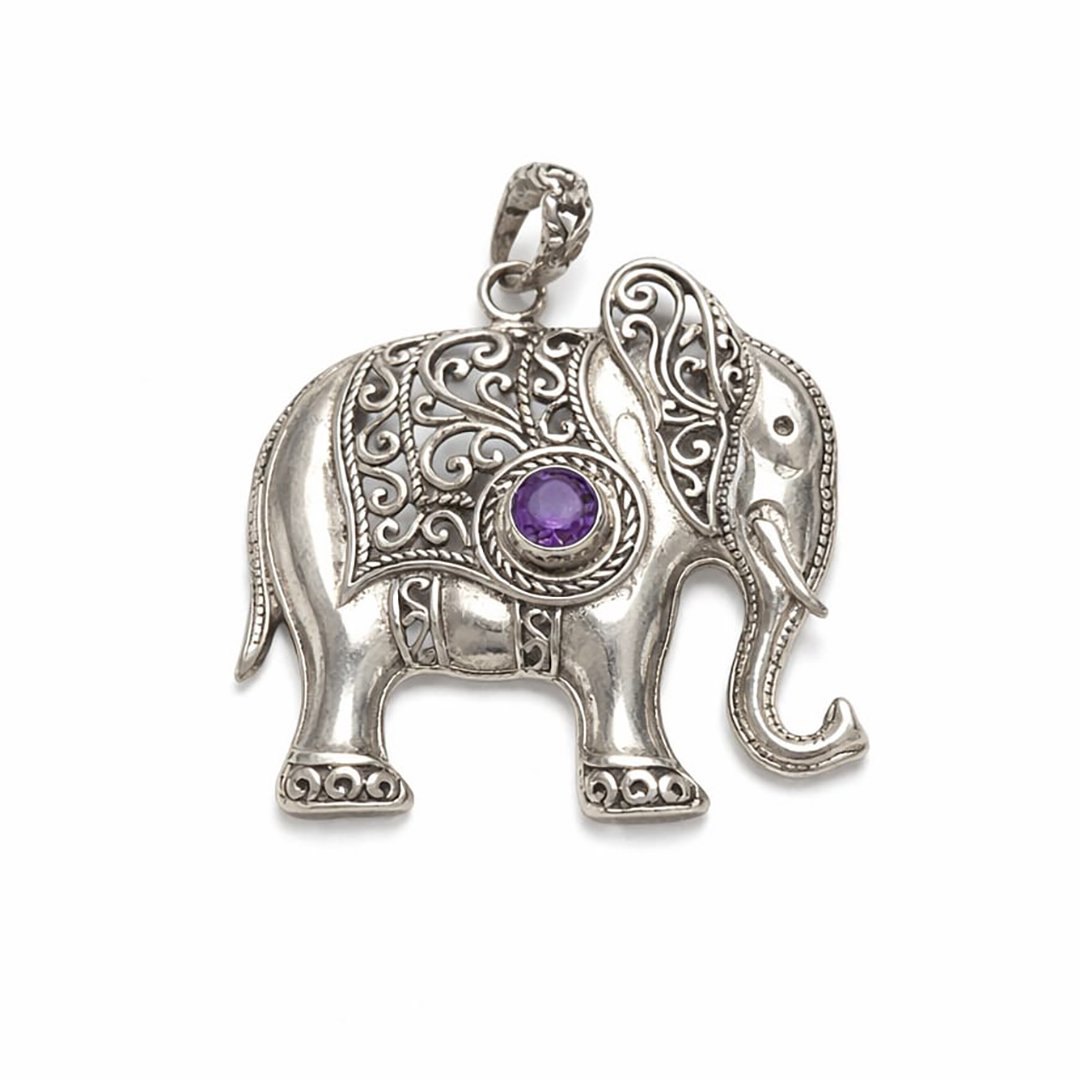 Pingente confeccionado em Prata 925, com Ametista Natural, modelo Elefante Indiano.