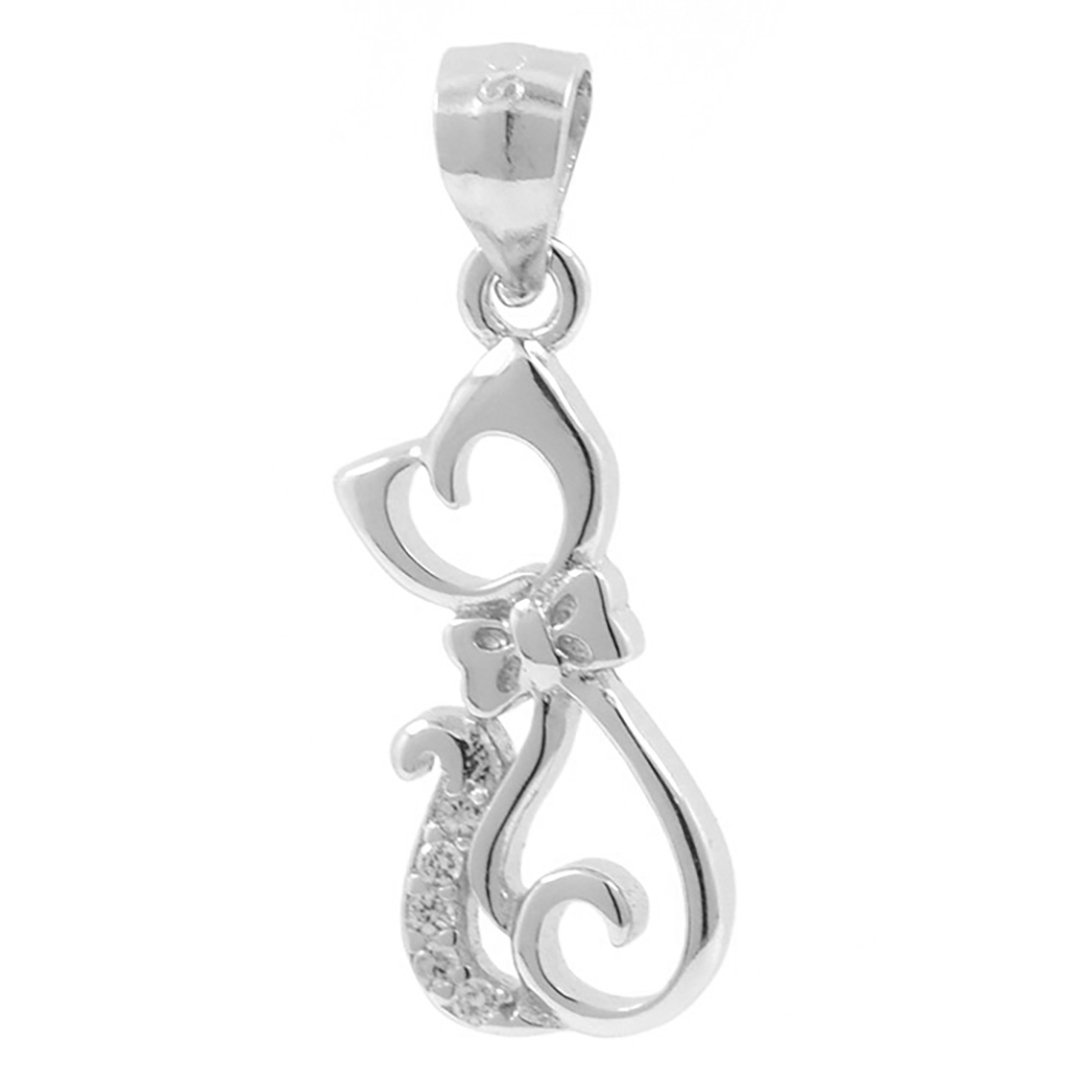 Pingente confeccionado em Prata 925, modelo em gato com rabo em Zircônias cravejadas