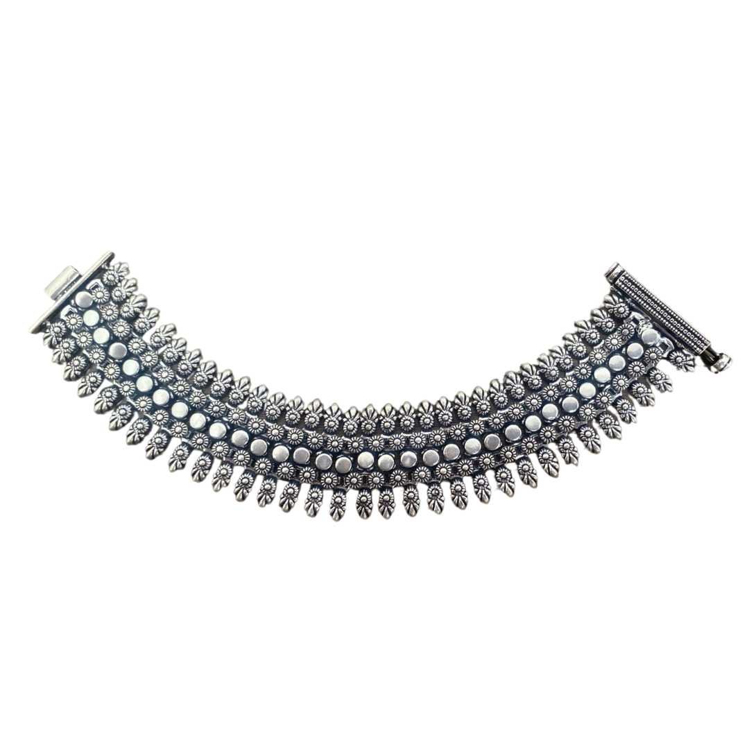Pulseira Maxi Balinesa em Prata 925, acabamento oxidado e fecho Tambor.